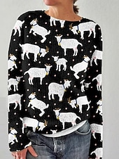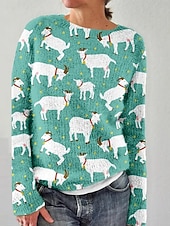 More information about Women's Sweater Pullover Vacation Daily Casual Animal Ribbed Crew Neck Print Long Sleeve Regular Tops Knit Outdoor Daily Holiday Black Blue Fall Winter