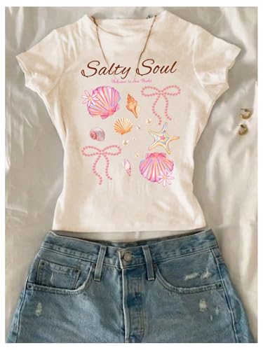 • Features: Girls t shirt, 3 packs, short sleeve, round neck, slim fit, graphic print, flower, starfish seashell print, casual