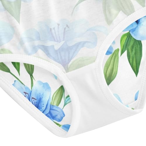 Blue Lilies Floral Green Leaves White Toddler Underwear Floral 2t Cotton Cute Panties Girl Fun Print Briefs Kids Undies