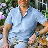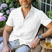 More information about Men's Shirt Linen Shirt Summer Shirt Button Down Shirt Casual Shirt Plain Home Casual Black White Light Green Pink Short Sleeve Collar Summer Clothing Apparel