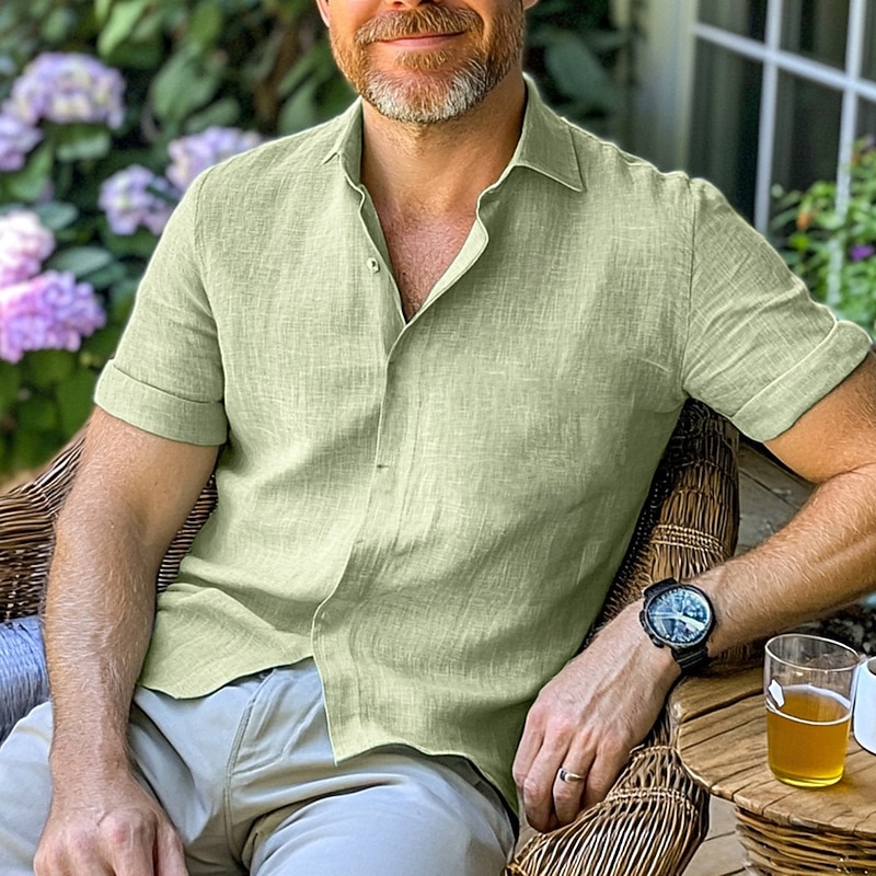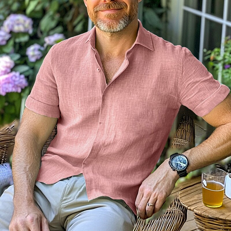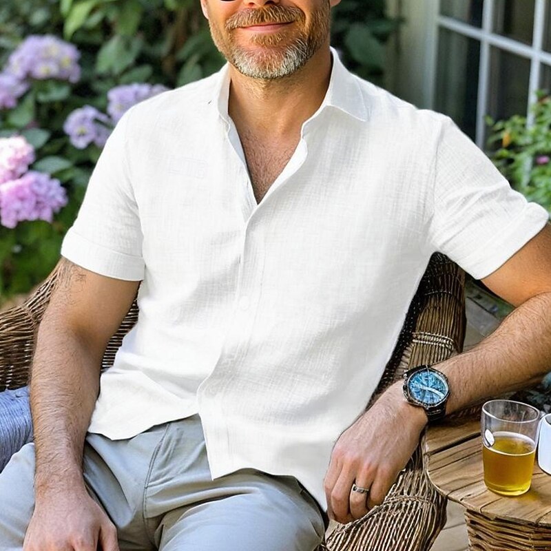 trending ! Men's Shirt Linen Shirt Summer Shirt Button Down Shirt Casual Shirt Plain Home Casual Black White Light Green Pink Short Sleeve Collar Summer Clothing Apparel