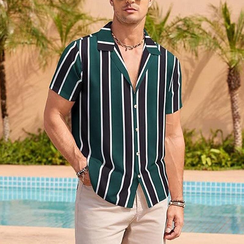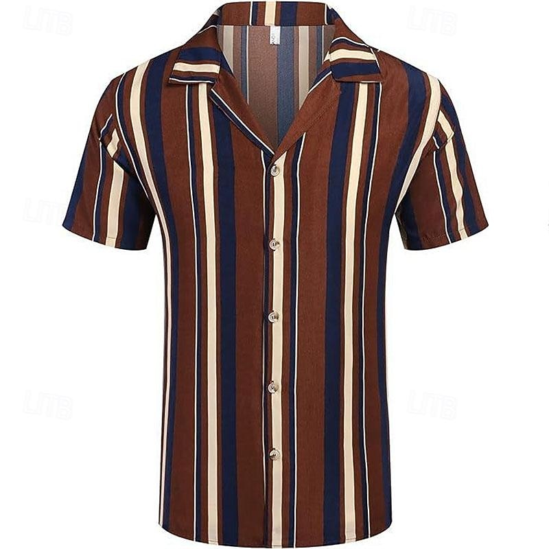This Men's Shirt Summer Shirt Casual Shirt Beach Shirt Button Up Shirt Striped Shirts Blue Green Chocolate Coffee Short Sleeve Stripes Camp Collar Vacation Hawaiian Clothing Apparel Polyester Fashion combines elegant design with practical functionality. Every detail has been carefully considered to ensure you get the foremost possible experience. The top-grade construction means this product will serve you well for years to come.