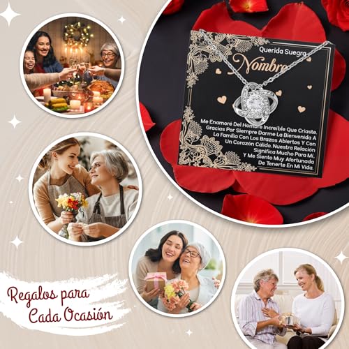 Material: 14k white gold finish or 18k yellow gold finishMetal type: Sterling SilverClasp type: BoxChain type: CableGem type: Cubic ZirconiaTarjeta Personalizable Con Mensaje: Cada collar va acompañado de una tarjeta con palabras sinceras que puedes personalizar con el nombre de tu suegra. Un detalle que convierte el regalo en algo más cercano, permitiéndote expresar tu afecto con honestidad y respeto.Adecuado Para Múltiples Ocasiones: Ya sea en su cumpleaños, Día de la Madre, Navidad, aniversario o simplemente como un gesto de cariño inesperado, este obsequio es una forma amable de recordarle cuánto valoras su presencia en tu vida.Diversidad De Estilos De Collares: Contamos con una selección de diseños que se adaptan a distintas personalidades. Si tu suegra prefiere un estilo sencillo, tradicional o algo más refinado, hay un collar que se ajustará a su gusto y que le acompañará con elegancia.Opciones De Presentación Cuidadas: Puedes elegir entre una caja clásica, una caja de madera de caoba con luz LED que realza el brillo del collar, o una caja decorativa con rosa giratoria que aporta calidez y delicadeza al conjunto.Un Obsequio Que Habla Desde El Corazón: Este collar representa mucho más que un adorno. Es una forma de agradecer su apoyo, de reconocer su papel en tu vida y de compartir con ella un gesto lleno de aprecio y cercanía. impeccable for everyday use. first-class materials and excellent craftsmanship ensure long-lasting durability.