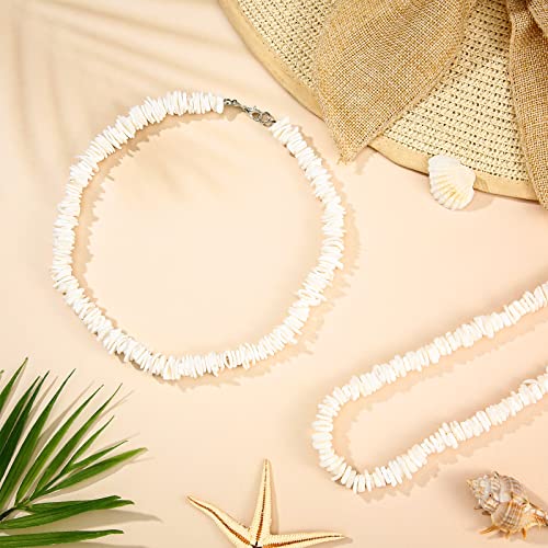 Funtery 6 Pcs White Puka Shell Necklace Hawaiian Seashell Necklace Beach Necklaces Clam Chips Surfer Necklace with 6 Extended Chain for Men Women