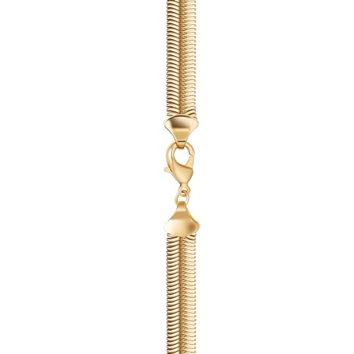 Barzel 18K Gold Plated Flat Herringbone Snake Chain Necklace for Women | Sizes 16-24 Inches | Made In Brazil