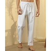 More information about Men's Linen Pants Trousers Summer Pants Beach Pants Drawstring Pocket Elastic Waist Plain Comfort Breathable Vacation Daily Holiday Hawaiian Boho Black White Micro-elastic