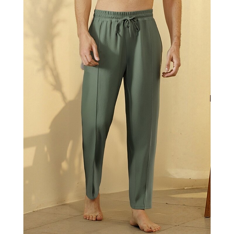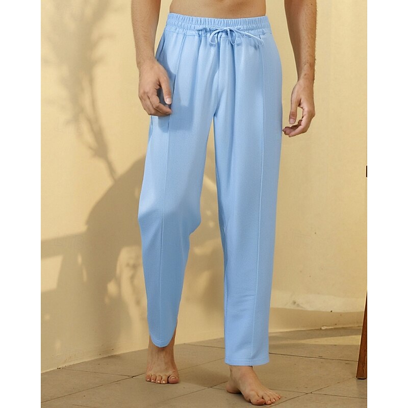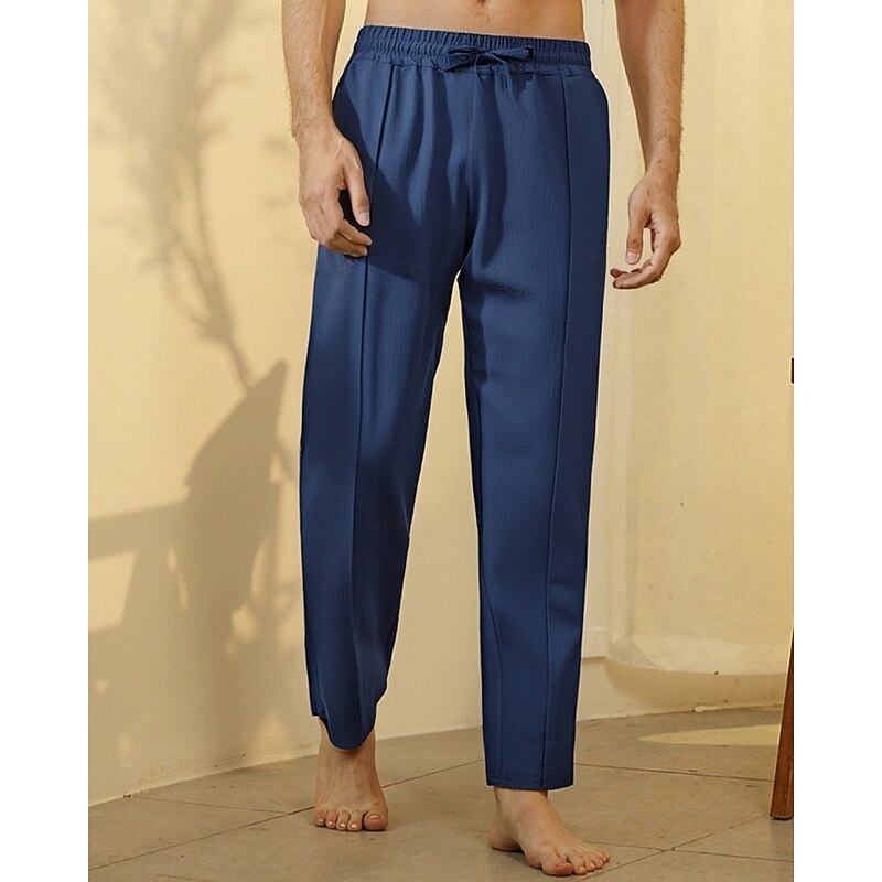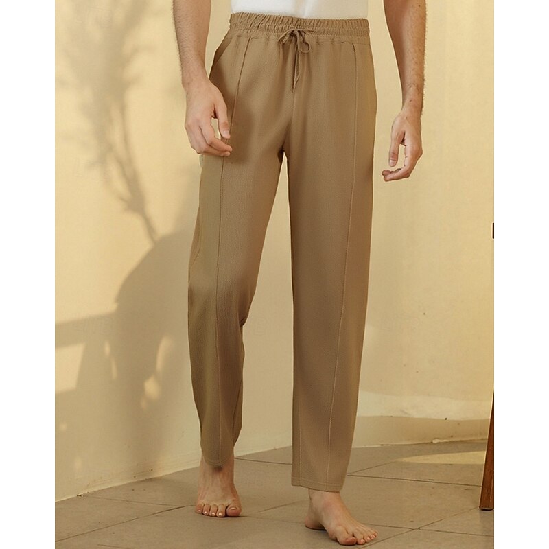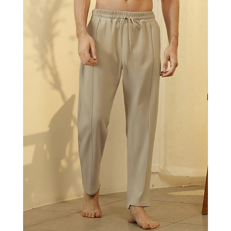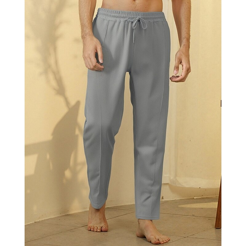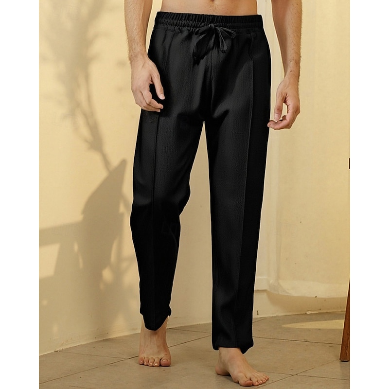 trending ! Men's Linen Pants Trousers Summer Pants Beach Pants Drawstring Pocket Elastic Waist Plain Comfort Breathable Vacation Daily Holiday Hawaiian Boho Black White Micro-elastic