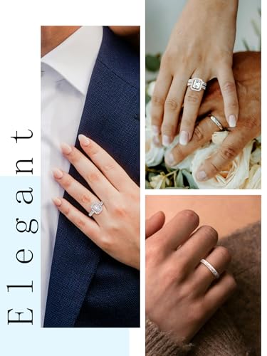 Ring size: 5Material: GemstoneMetal type: White gold plated silverGem type: MoissaniteItem type name: Wedding Ring Sets【Sparkling & Timeless Elegant】- 90PCS sparkling moissanite diamonds set on the engagement rings. Total Carat Weight: 1.994 Carats, comprising a 1-Carat Emeral-Cut central stone and 89pcs 0.994 Carat brilliant round cut moissanite stones.【Professional Certification】- All the stones on rings are lab-created moissanite diamonds selected="" by KSTYLE, which boast D color and VVS1 clarity. Each main stone has exclusive code and certificate. The fire brilliance of moissanite is 2.5 times that of natural diamonds, with a hardness reaching 9.25 (Natural diamond: 10).【Luxurious Design】- This luxurious ladies' bridal sets wedding rings features a vintage halo design that will never go out of style, with double-row diamonds on the ring band, creating a more exquisite design than natural diamonds, showcasing an unparalleled sense of luxury. Effortlessly become the center of attention at parties, dates, dances, and trips, and reap the accolades and admiration.【Exquisite Craftsmanship】- Each moissanite you see on the wedding bands is meticulously hand-set, to ensure greater durability and safety after setting. The metal part of rings is crafted from S925 sterling silver with 18K white gold thick plating layer, free from lead and nickel, and hypoallergenic.【Ideal Gift Choice】- Total of 2 rings in this moissanite rings set(moissanite engagement ring & half eternity ring), presented in an elegant box. It serves as an outstanding jewelry gift for women, wife, sisters, daughters, mothers(in law), girlfriends, aunts. Ideal memorable surprise for Proposal, Weddings, Valentine's Day, Mother's Day, Birthdays, Anniversaries, Thanksgiving, Christmas, and more. It is also impeccable for everyday wear, be it at home or in the office and suitable for any occasion【90-Day Service】We offer a 90-day unconditional service (non-human damage) for all women's wedding rings. If there's anything that perplexes you, please don't hesitate to contact us, and our professional team will provide a solution within 24 hours. Perfect for everyday use. first-class materials and excellent craftsmanship ensure long-lasting durability.