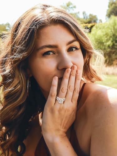 KSTYLE Total 3-4ct Center Stone 1/2/3ct Moissanite Wedding Set Rings for Women (D Color-VVS1 | Emerald/Round Cut) 14K White Gold Plated S925 Sterling Silver Bridal Sets for Wife