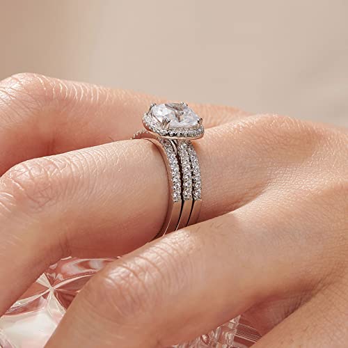 2.66CT Wedding Engagement Rings Set for Women 925 Sterling Silver Cushion Halo CZ Wedding Bands Promise Bridal Ring Enhancer for her Size 4-12