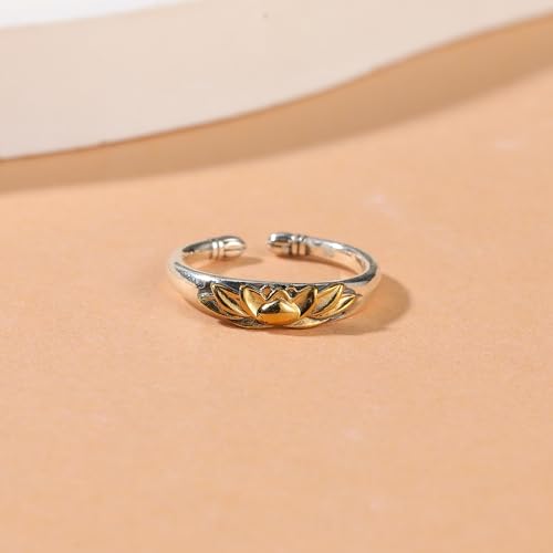LOVECOM Lotus Promise Ring for Women 925 Sterling Silver Adjustable Lotus Flower Floral Ring Gold Plated Open Inspirational Empowering Statement Ring Birthday Jewelry Gifts for Her Mom Wife