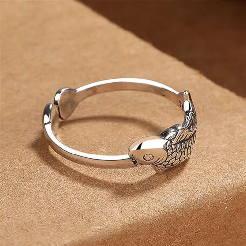 OIDIMS Cute Little Fish Fashion Ring Finger Band for Women Koi Carp Lucky Statement Adjustable Open Dainty Vintage Antique Promise Ring Wedding Bands Extendable Knuckle Middle Comfort Fit