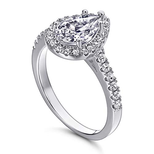 Blocaci 2 Carat Center Pear Shaped Engagement Rings for Women Moissanite Wedding Anniversary Rings 925 Sterling Silver 10K 14K 18K Gold with Text Engraving