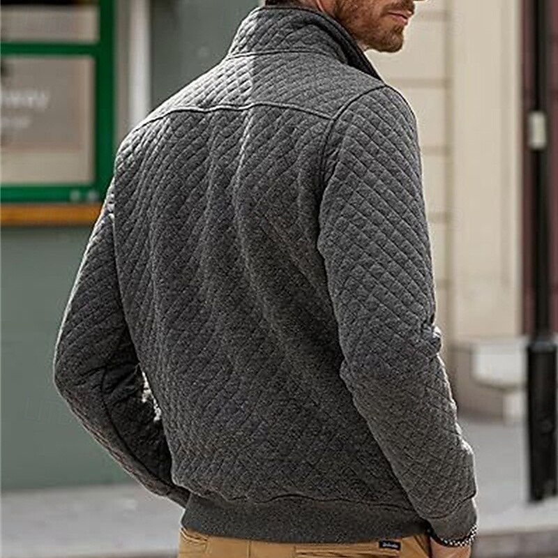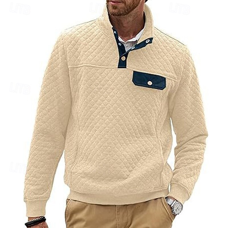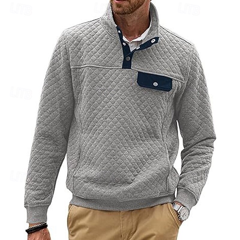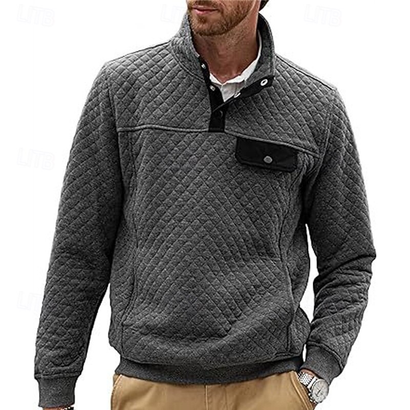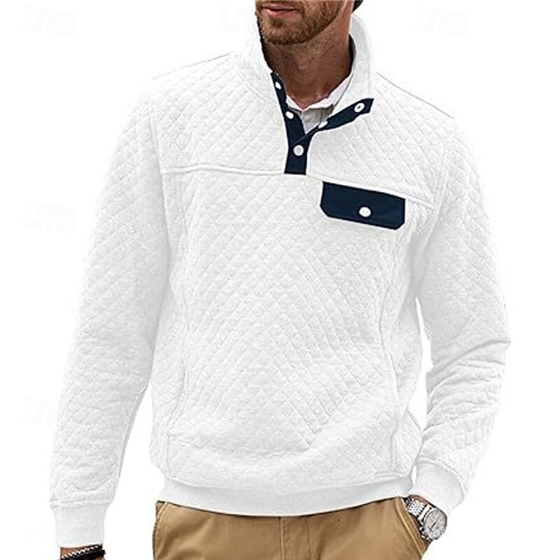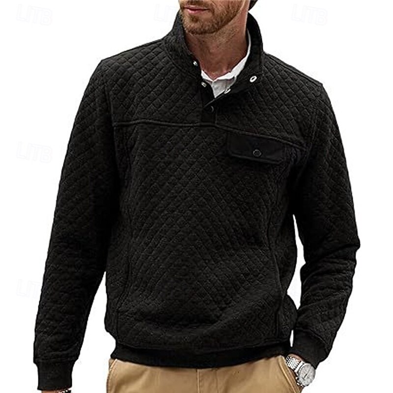 More information about Men's Sweatshirt Black White Dark Green Light Grey Dark Gray Standing Collar Color Block Jacquard Patchwork Pocket Ribbed Sports & Outdoor Daily Holiday Polyester Textured Streetwear Basic Casual