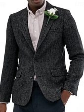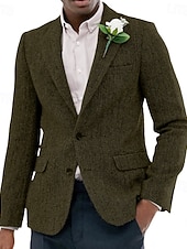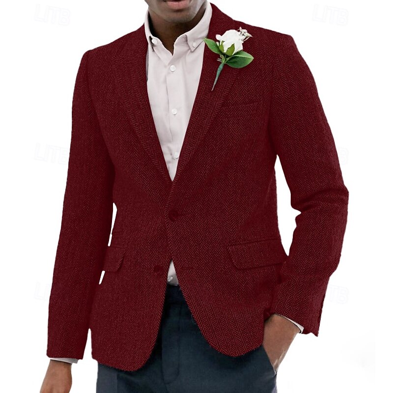 More information about Men's Tweed Blazer Notch Collar Vintage Herringbone Blazer Burgundy Brown Green Standard Fit Single Breasted Two-buttons
