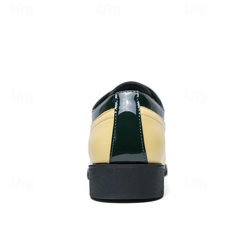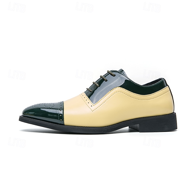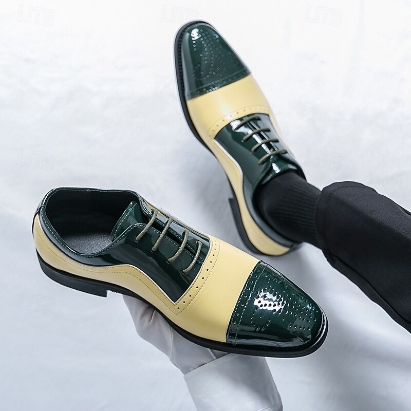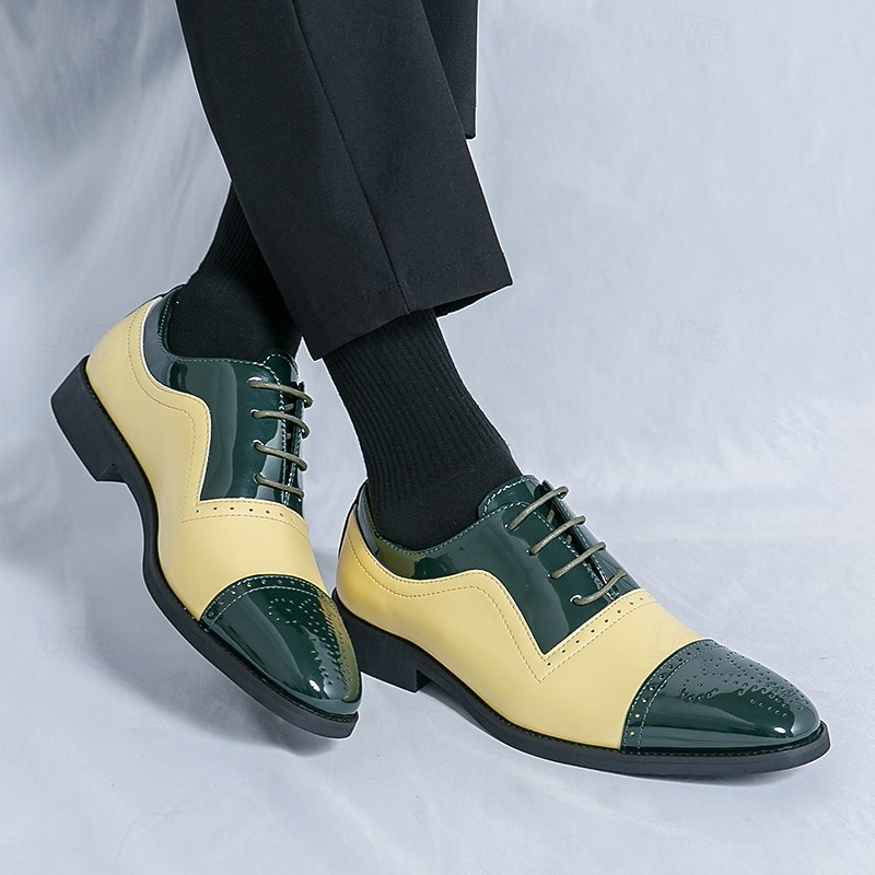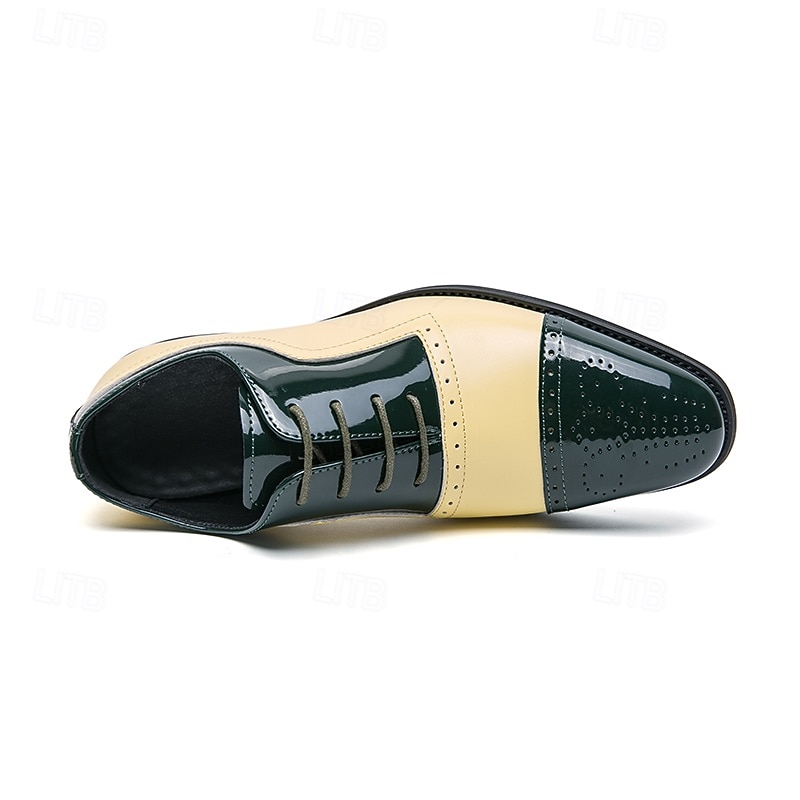 More information about Men's Two-Tone Patent Leather Oxford Shoes, Green and Beige Brogue Dress Shoes for Weddings, Parties and Formal Events