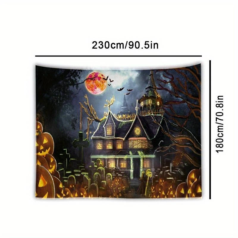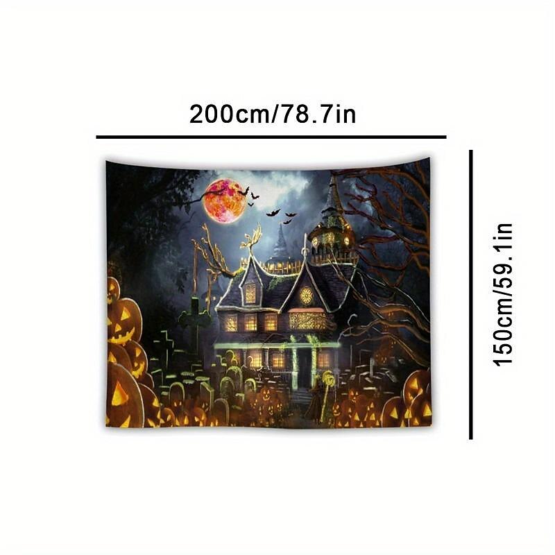 More information about Halloween Decorations Backlight Tapestry Jack O Lantern UV Reactive Hanging Haunted House Home Decoration Background Cloth Art Home Bedroom Living Room
