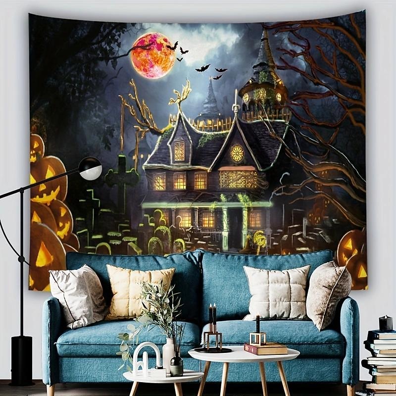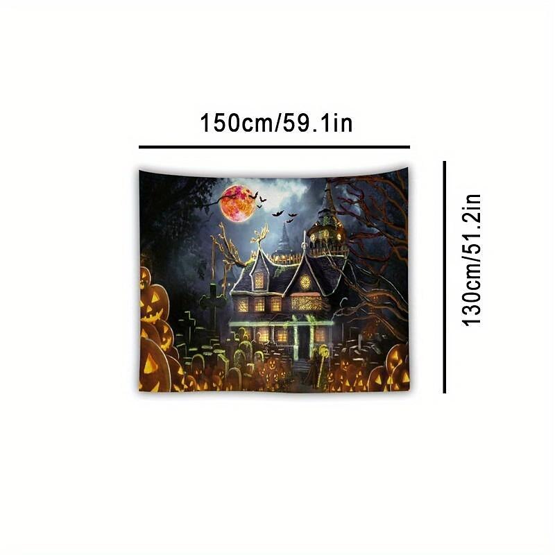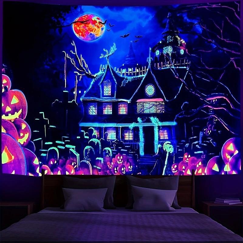 trending ! Halloween Decorations Backlight Tapestry Jack O Lantern UV Reactive Hanging Haunted House Home Decoration Background Cloth Art Home Bedroom Living Room