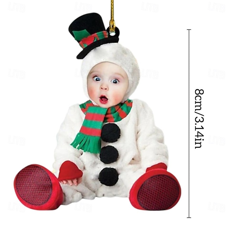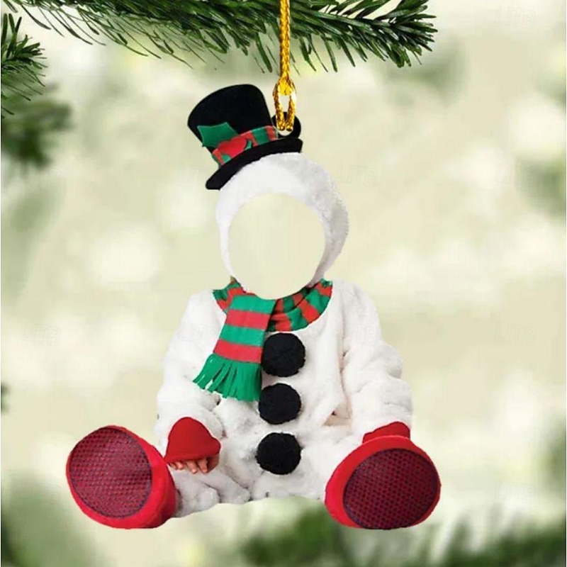 Personalized Photo Christmas Ornaments Acrylic 2D Custom Snowman Baby Face Christmas Tree Ornaments Xmas Decoration Hanging Pendant Gifts