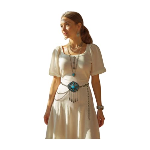 • Bohemian Western Style Belt – Bollywood Belly Dance Accessory Elevate your style with this Trendy Bohemian Women’s Metal Chain Links Waistband from the Southwestern Floral Collection