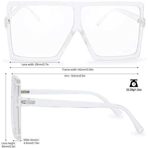 The Fresh Large Oversized Fashion Square Flat Top Sunglasses with Gift Box (4-Shiny Crystal, Clear/AR Coating)