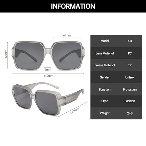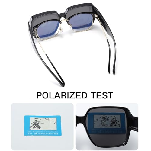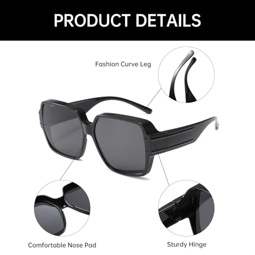 Origin: Imported【EASY to USE】- The wear over sunglasses over glasses, if you have to wear prescription glasses or reading glasses outdoors and do not like to wear clip-on glasses but want to protect from the harmful ultraviolet rays of the sun, these fashionable sunglasses are the perfect choice. And it can be used with eyeglasses and alone, which is sleek and convenient.【supreme MATERIALS】- The fashion sunglasses is made of high-quality UV400 HD lenses, comfortable nose pads, and skin-friendly plastic temples. All the details can ensure you use it for a long time.【UV400 & Polarized Lens】 UV400 Protection and polarized lenses can block harmful light UV Rays (including UVA, UVB and UVC), reduce glares and reflections, it will make you feel more comfortable.【PRODUCTS SIZE】- Lens height: 58mm (2.26 inches), lens width: 61mm (2.37 inches), bridge width: 16mm (0.62 inches), frame width: 147mm (5.73 inches), leg length: 147mm (5.73 inches).【WIDE APPLICATIONS】- This trendy wear over sunglasses glasses is the better choice for driving, fishing, running, cycling, traveling and other outdoor activities. It is also the perfect gift for family or friends. They will like it very much. Perfect for everyday use. High quality materials and excellent craftsmanship ensure long-lasting durability.
