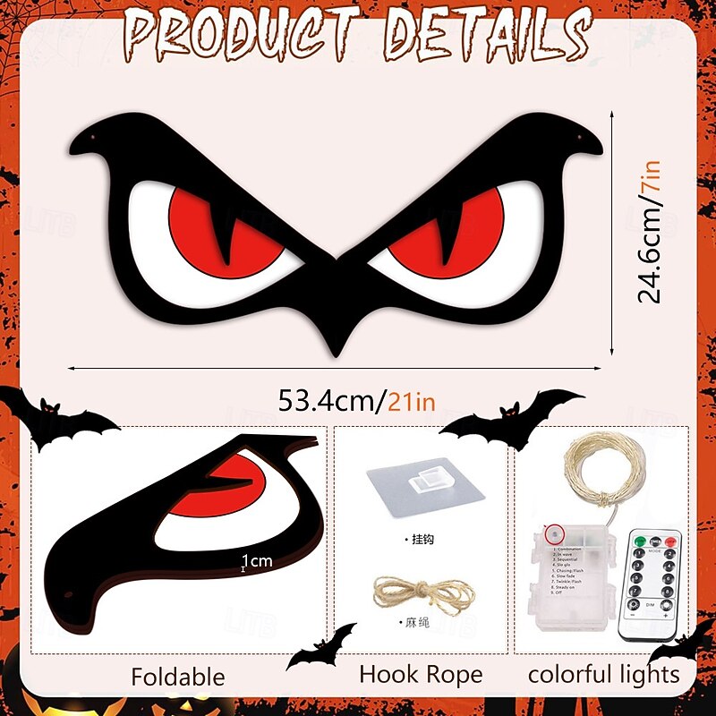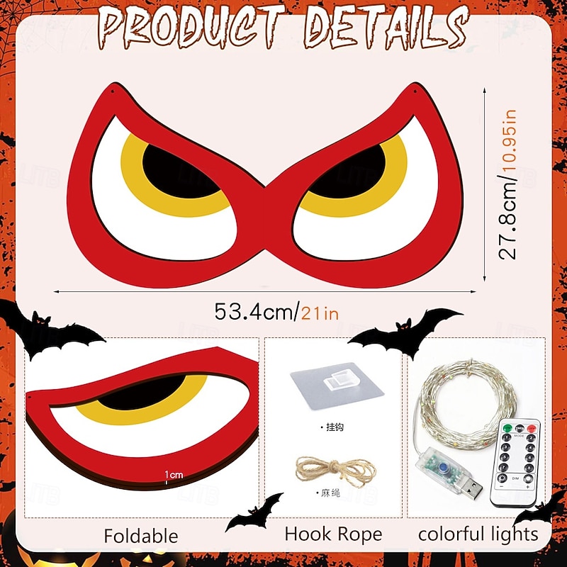 $27.99 - Halloween Decorations Spooky Eyes Lights, 20 Inch Large Wooden Halloween Window Eye Lights with 7 Color Modes and USB/Battery Operated for Home, Wall, Window, Trees Halloween Décor 2025. Shop for cheap Halloween Outdoor online? Buy at lightinthebox.com on sale today!