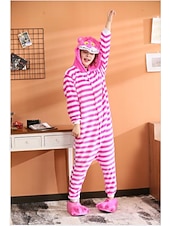Highlights [Fabric] : Crafted from high-quality polar fleece, these Kigurumi pajamas offer a plush and soft texture, ensuring warmth and comfort during wear. The stretchy material provides a relaxed fit, making it perfect for extended wear without sacrificing freedom of movement. [Fit] : Designed with a loose and relaxed fit, these onesies cater to both men and women. The full-length legs and long sleeves provide optimal coverage, while the practical front zipper ensures easy dressing and undressing. [Design Highlights] : Featuring a whimsical Cheshire Cat design, this onesie includes a playful hood adorned with an expressive face and delightful ears. The pink and white striped pattern adds a touch of fun and fantasy, making it a standout choice for those who appreciate exceptional and charming costumes. [Occasions] : Ideal for a range of fun-filled events, including Carnival festivities, Halloween parties, and themed sleepovers. Whether lounging at home or attending a costume event, these pajamas provide warmth and entertainment in equal measure. [Size Range] : Available in sizes S, M, L, and XL, these Kigurumi pajamas ensure a comfortable fit for a wide range of body types, making it easy to find the perfect size for everyone. Perfect for everyday use. supreme materials and excellent craftsmanship ensure long-lasting durability.