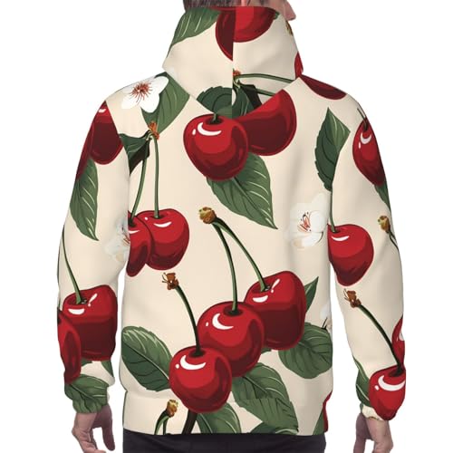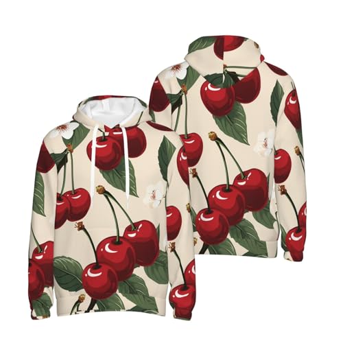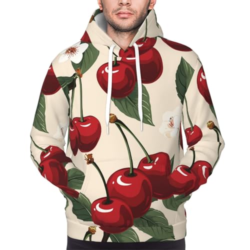 trending ! Men's Fleece Pullover Hoodie Long Sleeve Hooded Red Cherry Pattern Sweatshirt Casual Shirts With Pockets