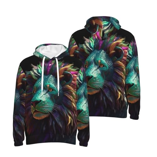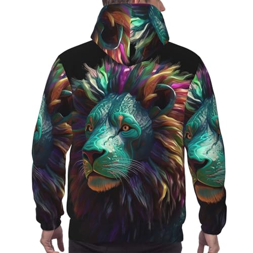 Men's Fleece Pullover Hoodie Long Sleeve Hooded Abstract 3D Art Lion Sweatshirt Casual Shirts With Pockets