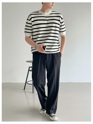 More information about Men's Striped Short Sleeve Sweaters Half Sleeve Crew Neck Casual Knit Tops
