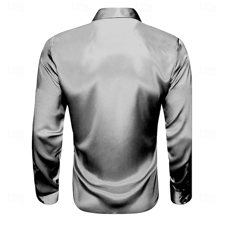 This men's shirt is crafted from a high-quality satin and artificial silk blend, offering a smooth and luxurious feel. The inelastic fabric ensures a sleek and polished appearance, making it suitable for various occasions throughout the year, including spring, summer, fall, and winter.