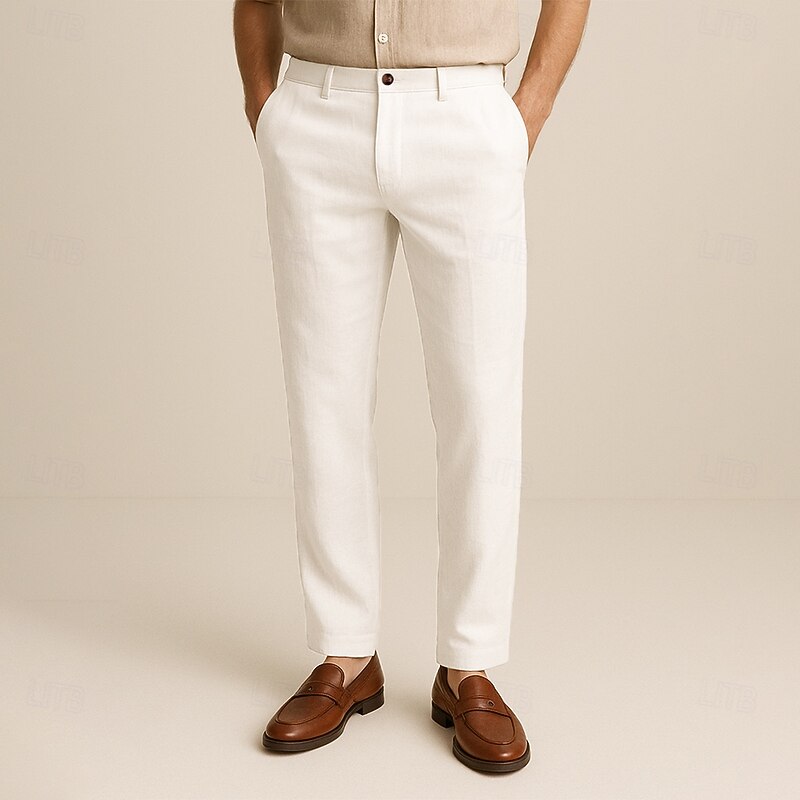$45.99 - Men's 100% Linen Pants Solid Color Breathable Full Length Formal Wedding Outdoor Elegant Vacation Navy Blue Beige Micro-elastic 2025. Shop for cheap Men's Elite Pants online? Buy at lightinthebox.com on sale today!
