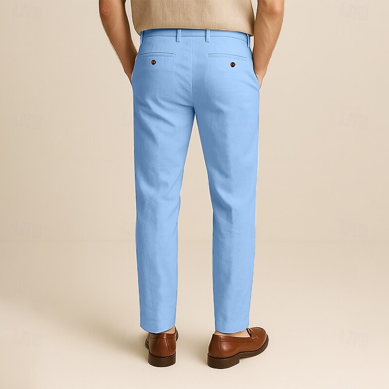 Why Choose Men's 100% Linen Pants Solid Color Breathable Full Length Formal Wedding Outdoor Elegant Vacation Navy Blue Beige Micro-elastic?