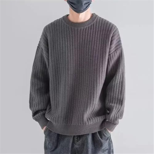 Men Vintage Textured Knit Pullover Casual Solid Color Long Sleeve Sweater Spring Autumn Streetwear Top
