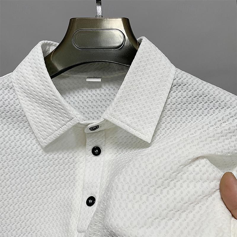 This Men's Waffle Polo Shirt Golf Shirt Work Casual Lapel Short Sleeve Basic contemporary Plain Button Spring & Summer Regular Fit Black White Navy Blue Dark Green Coffee Gray Waffle Polo Shirt combines elegant design with practical functionality. Every detail has been carefully considered to ensure you get the best possible experience. The first-class construction means this product will serve you well for years to come.