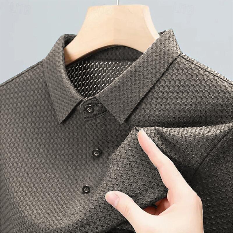 Why Choose Men's Waffle Polo Shirt Golf Shirt Work Casual Lapel Short Sleeve Basic newly-released-age Plain Button Spring & Summer Regular Fit Black White Navy Blue Dark Green Coffee Gray Waffle Polo Shirt?