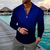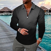 Men's Striped Hawaiian Polo Shirts Golf Shirt Long Sleeve Polo Shirts Collared Shirts Casual Beach Wear Vacation Wear Party Outfits 3D Print Quarter Zip Polo Black Yellow Blue