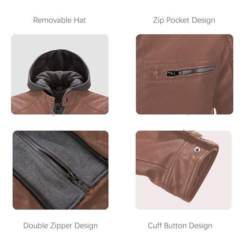 Fabric type: Faux LeatherCare instructions: Hand Wash OnlyOrigin: ImportedHigh Quality: Faux leather jacket for men fashion. Premium synthetic leather, well-made, super smooth PU leather. Wipe with leather cleaner and a damp cloth. Perfect as a gift for your boyfriend or lover. This is tight fitting. Size Up is recommended.Two Styles: This men faux leather zip up jacket has a detachable hood, give you different styles. This casual biker coat with exposed zip detail features a cropped pattern. Two upper snap flap pockets with additional zipped pockets above and two lower snap patch pockets.Multipurpose: The slim fit is designed to easily flatter any figure for your everyday wear. This vegan pleather jacket for men is perfect for motorcycle, everyday work, school, holidays, the street and more. You can wear it in cool winter, spring and fall.Waterproof and Windproof: This faux leather jackets for men has a fine texture and is water and wind resistant, so you can stay dry in light rain and resist the wind in cold weather. Long sleeves tops keep you warm when you wear it.Size Note: Please select your size in contrast with our size measurement in the sixth products picture, this is very important. And please reach out us first if you have any questions about the quality of our products or if you are experiencing any difficulty about size and delivery. Perfect for everyday use. superior materials and excellent craftsmanship ensure long-lasting durability.