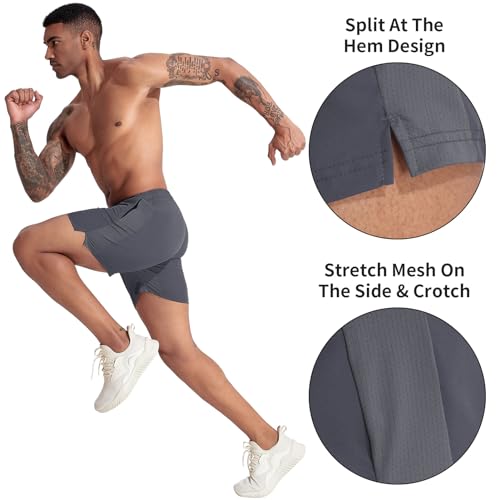 VPOS 2 Pack Men's Athletic Shorts 5/7 Inch Inseam, Mens Workout Shorts Lightweight prompt Dry Gym Running Shorts for Men
