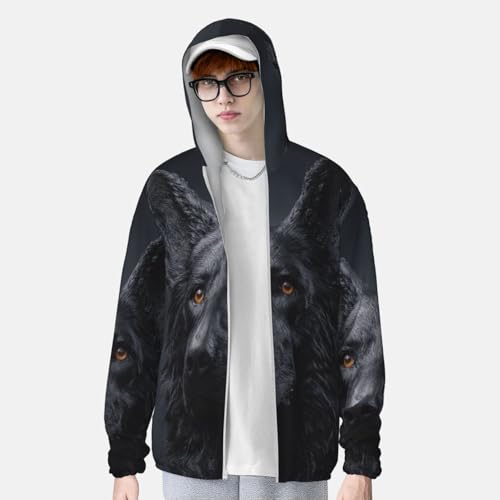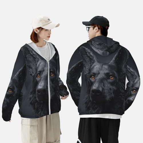 Fabric type: 100% PolyesterUV Protection UPF 50: Crafted from polyester quick-drying rated fabric block the sun, this UPF 50 sun protection hoodie is lightweight, breathable, and offers a soft touch. It provides wind resistance, UV protection, ensuring durability and long-lasting comfort.Jackets Dimensions: We're confident this long sleeve jacket is some of the best you'll find,there are 6 sizes in total: s, m, l, xl, xxl, 3xl; rich pattern design, covers various themes,comfortable version, follows the fashion trend, making you look more attractive and chic.Unisex Cooling Hoodie Shirts: Our sports jacket zipper and hooded design, easy to wear and take off, fashion goes with everything. Elastic band design at the hem and cuffs, one inner pocket on the left. Hiking sun shirt fits easily in your luggage, backpack or tote bag for on-the-go convenience.Sun Protection: These black german shepherd mens long sleeve fishing shirts with a hoodie can protect your neck from sun. UPF 50+ sunscreen fabric, ideal for outdoor activities, such as running, hiking, swimming, fishing and trainingHooded Sun Shirts: Ideal for men and women alike, this black german shepherd sport hoodie suits various outdoor activities, comfortable fit, can be paired with a variety of bottoms. A thoughtful gift choice for family, friends, or colleagues who love active lifestyles. Perfect for everyday use. first-class materials and excellent craftsmanship ensure long-lasting durability.