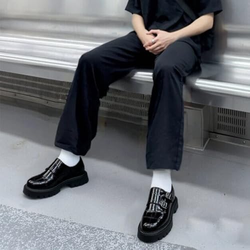 trending ! Men's Leather Printed Platform Monk Buckles Dress Loafers Fashion Round Toe Chunky Block Heel Non-Slip Slip-On Formal Business Shoes for Wedding Party Work